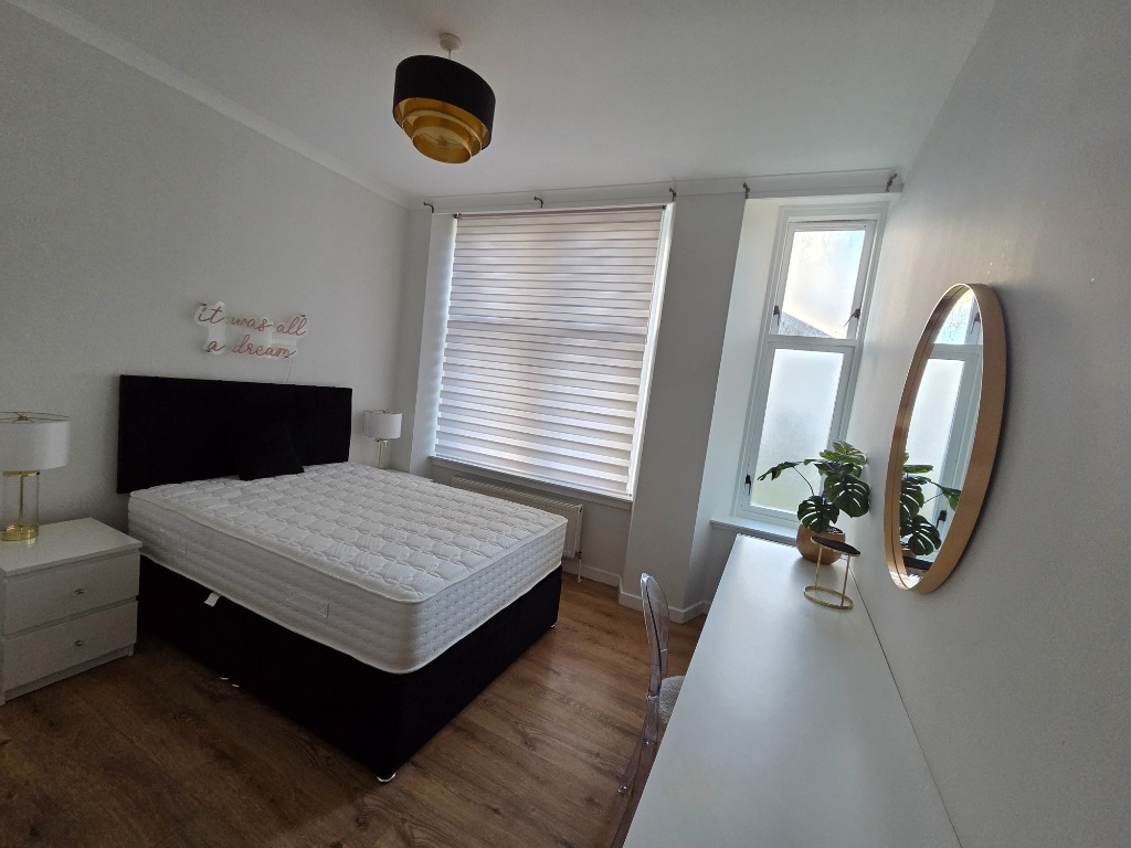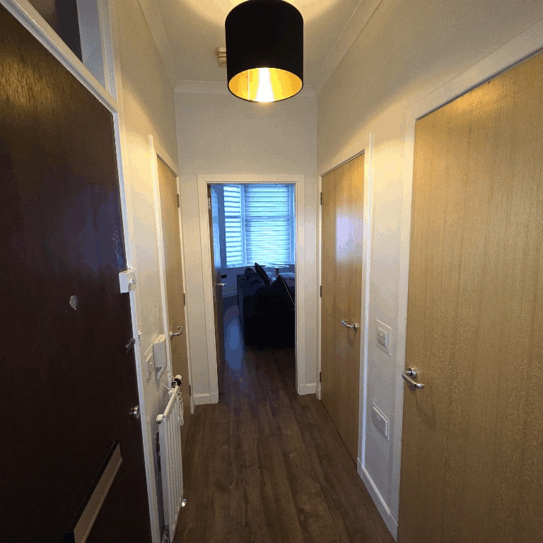 The property comprises secure entry, well maintained communal hallway, entrance hallway with storage cupboards, spacious lounge with beautiful bay window which is open plan to the modern fitted kitchen with integrated oven and hob, spacious double bedroom with built in storage and modern shower room with walk in shower enclosure.