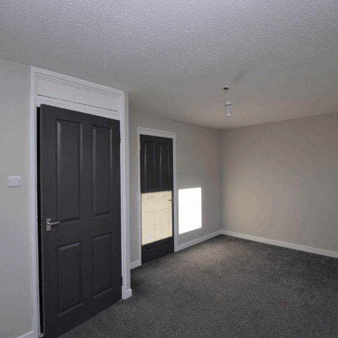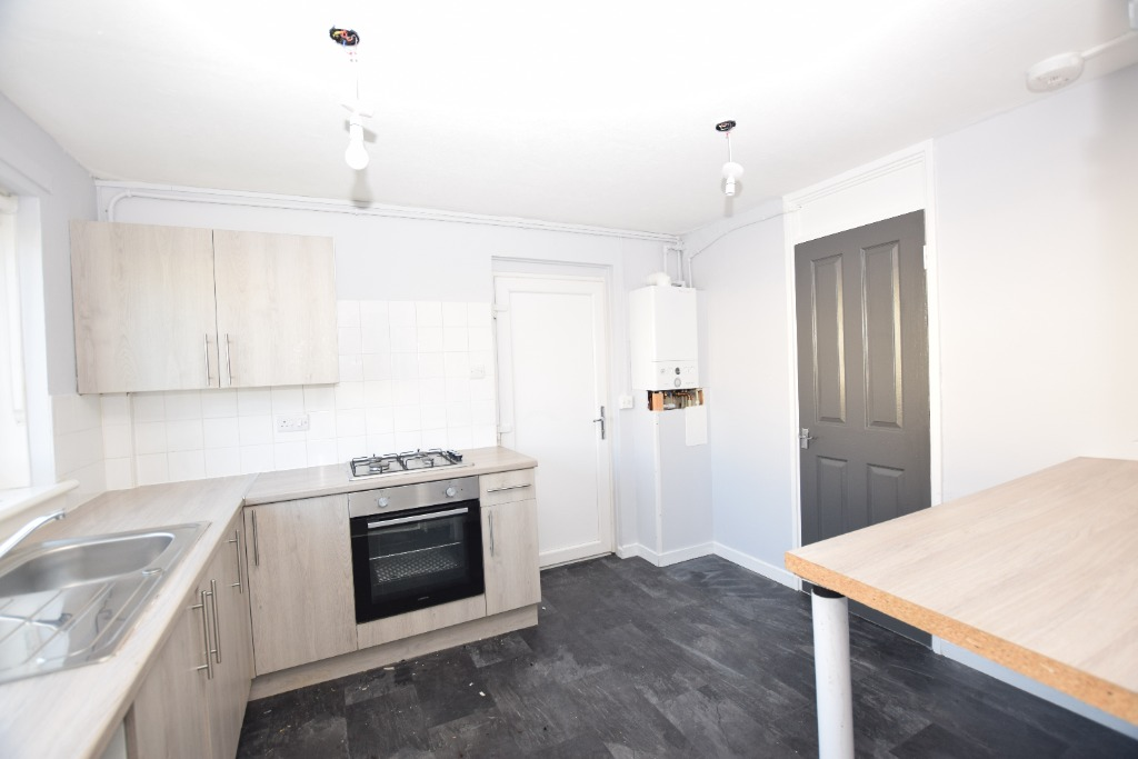 The property features entrance hallway, modern fitted kitchen with integrated oven and hob, rear facing lounge, two generous double bedrooms with storage and a modern bathroom with electric shower over bath.