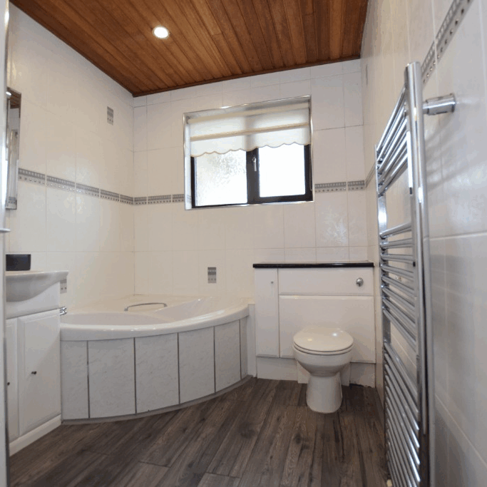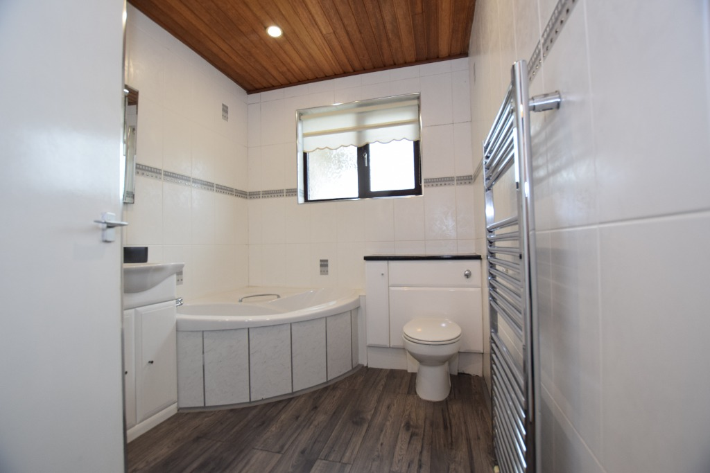 The property comprises large entrance hallway, modern fitted kitchen with farmhouse style cooker, utility room with washing machine and American style fridge freezer, front facing lounge with feature fireplace, front facing master bedroom with fitted mirrored wardrobes, two further double bedrooms with fitted wardrobes and four-piece family bathroom with corner bath and shower cubicle.