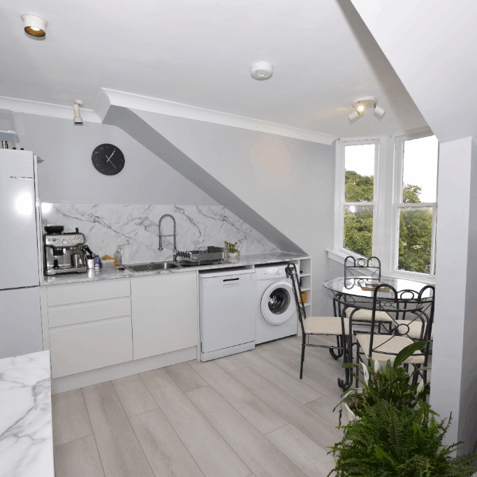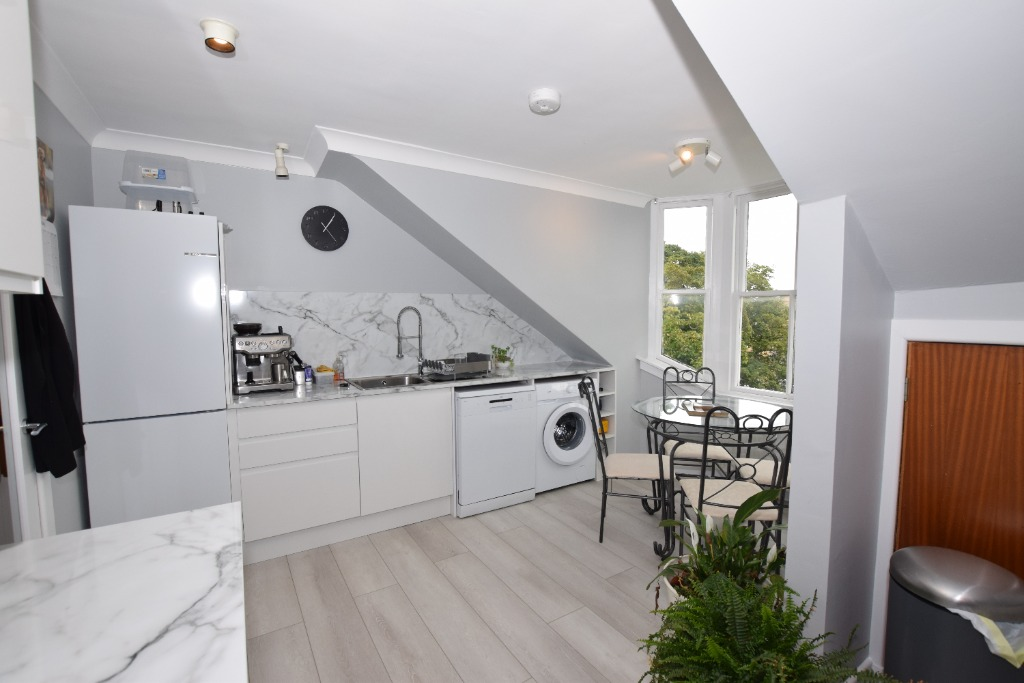The property comprises of secure communal entry system, communal hallway leading to the top floor, entrance hallway, spacious lounge, with stunning open views, which is open plan to a generous modern fitted kitchen complemented by ample base units, integrated oven & hob, fridge freezer, washing machine and dishwasher, large rear facing bedroom and modern bathroom with shower over the bath.