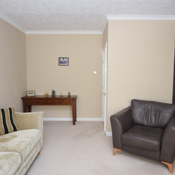 You enter through a private front door into the hallway. To the left, there is a front-facing kitchen with good worktop and storage space, along with a modern shower room just off the hall. Straight ahead from the entrance is a bright front-facing room, currently set up as a lounge but equally suitable as a bedroom depending on how you want to use the space.