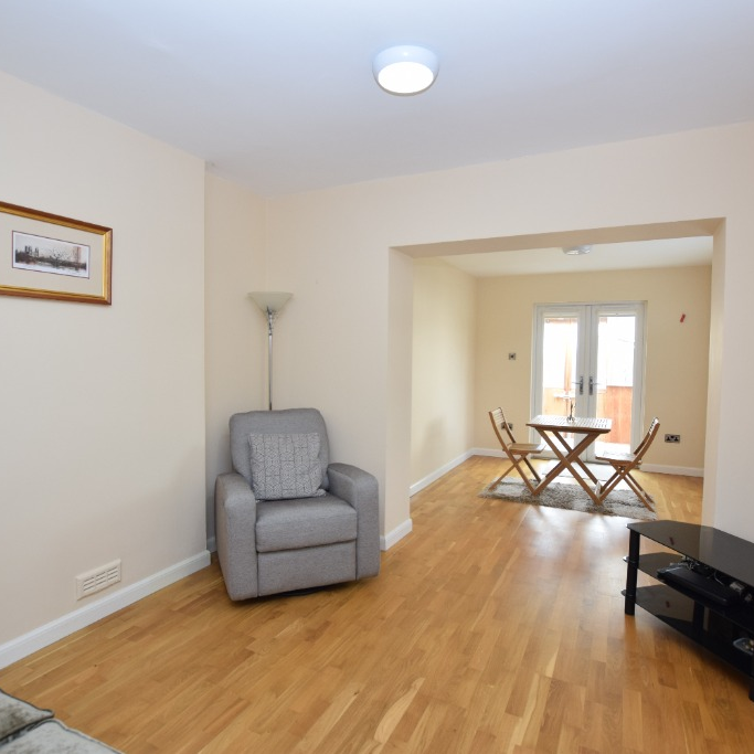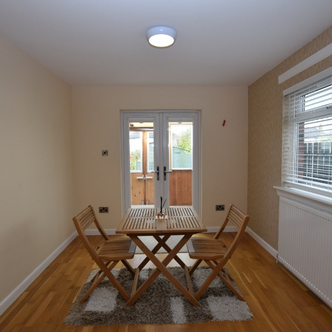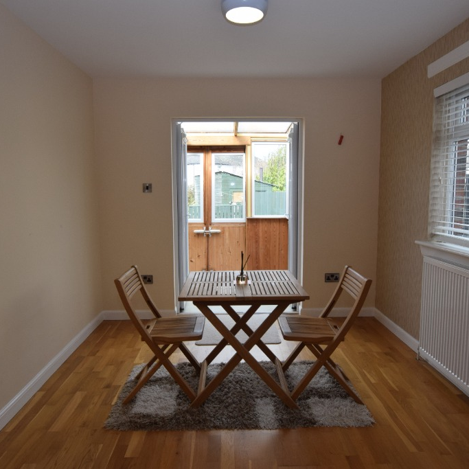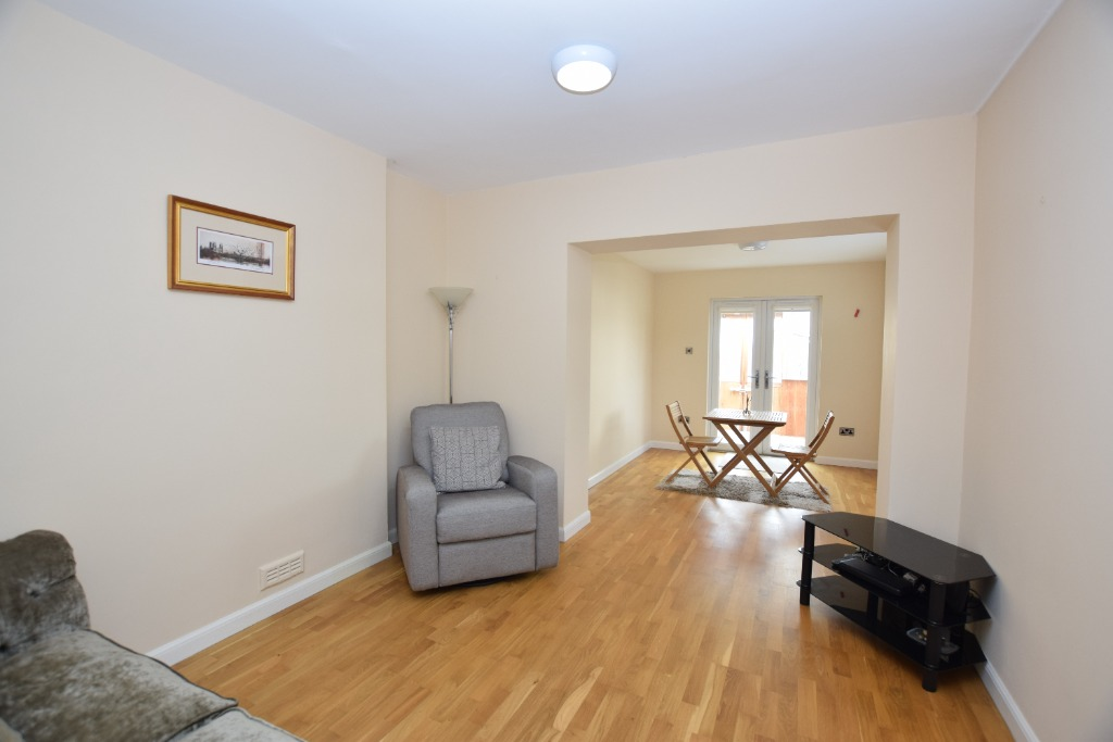 To the right of the hallway, there is a double bedroom. Moving further through, the main living and dining room sits to the rear, offering a good amount of space for everyday living and dining.
