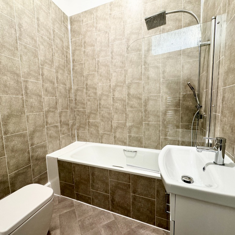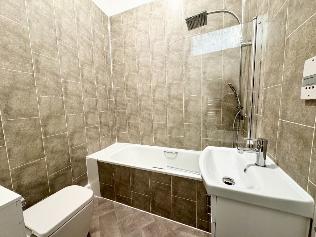 The bathroom is fitted with a three piece suite including bath with shower over, wash hand basin and WC.