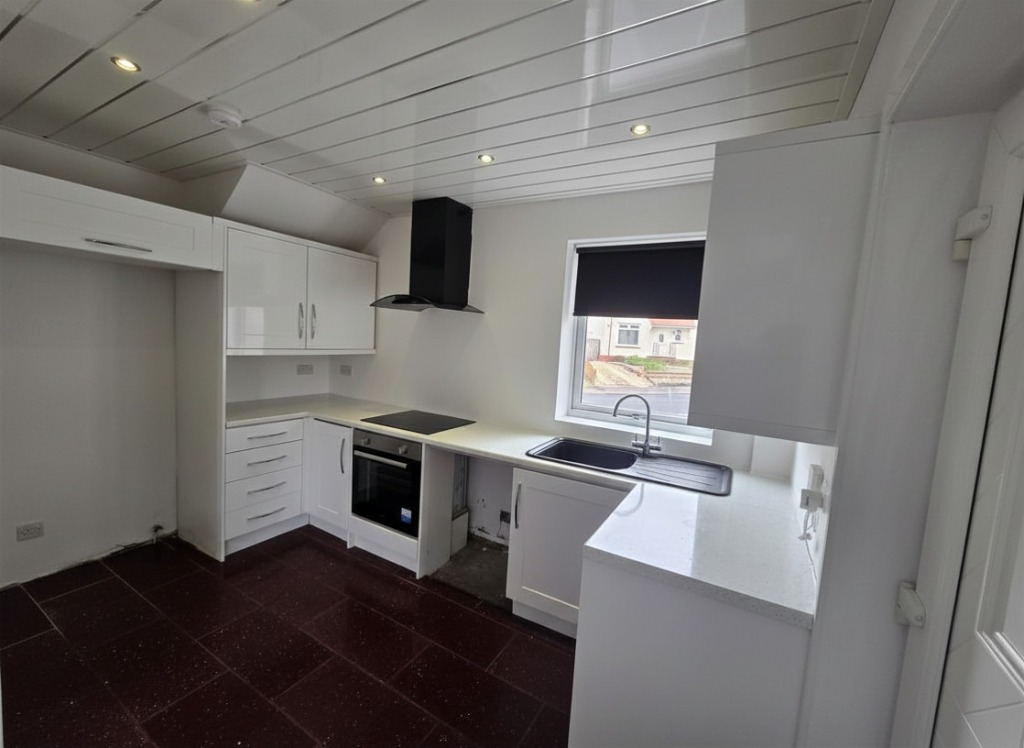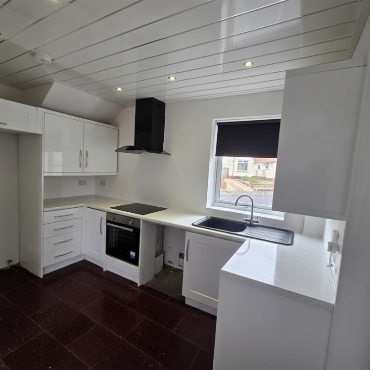A modern fitted kitchen with ample wall and base units, offering good storage and workspace.