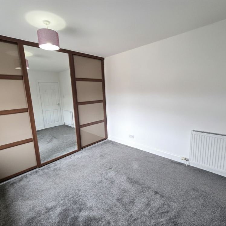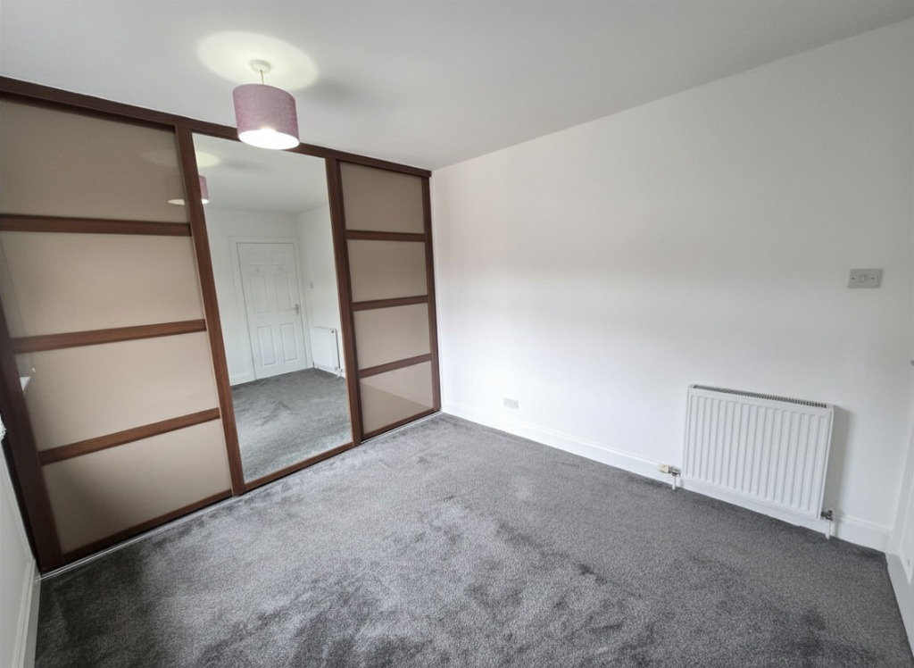 A well sized main bedroom featuring fitted mirrored wardrobes, providing excellent storage.