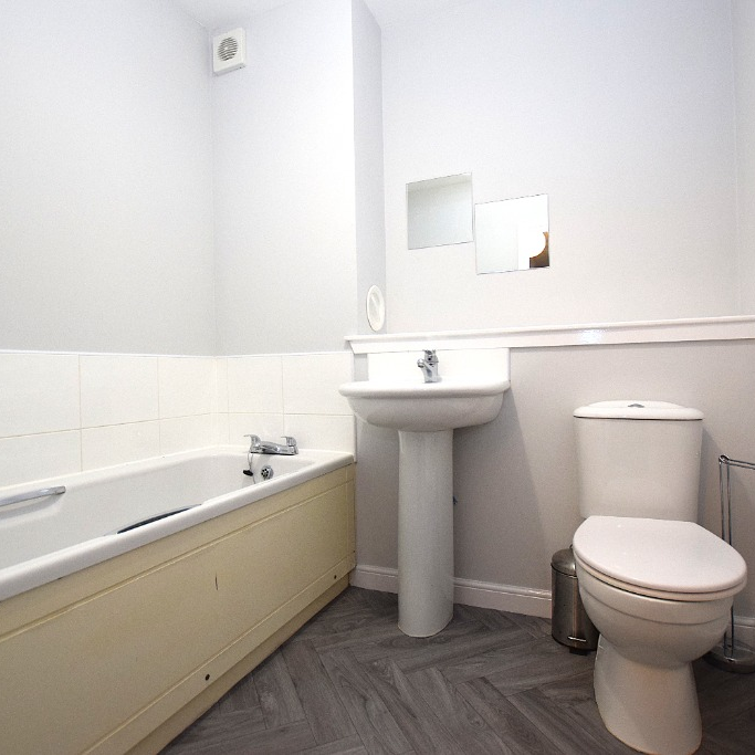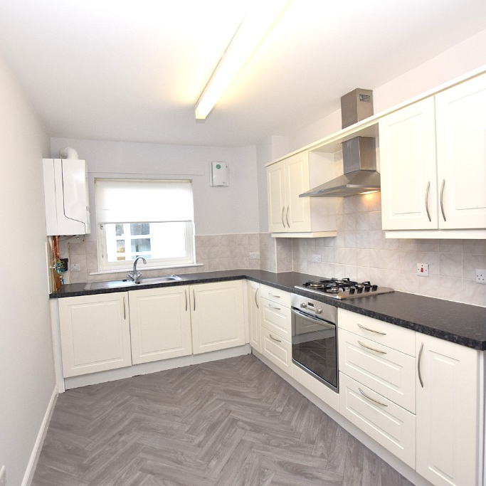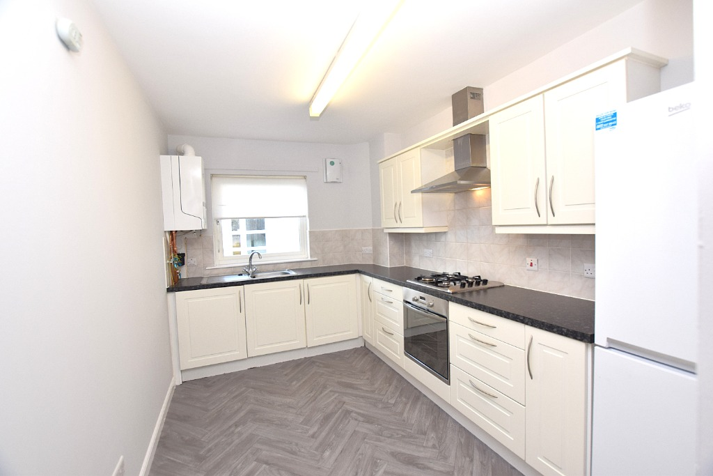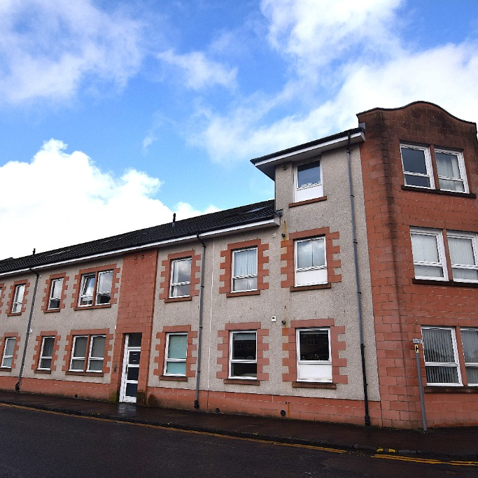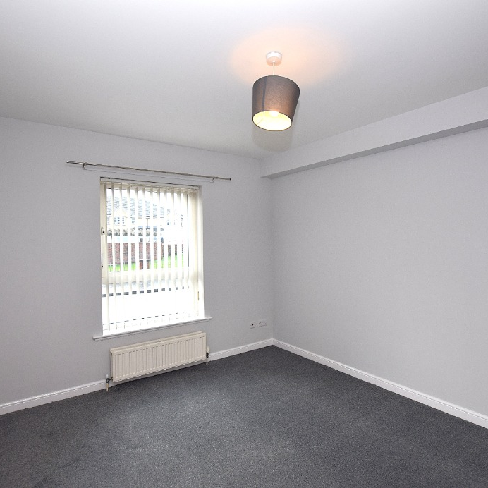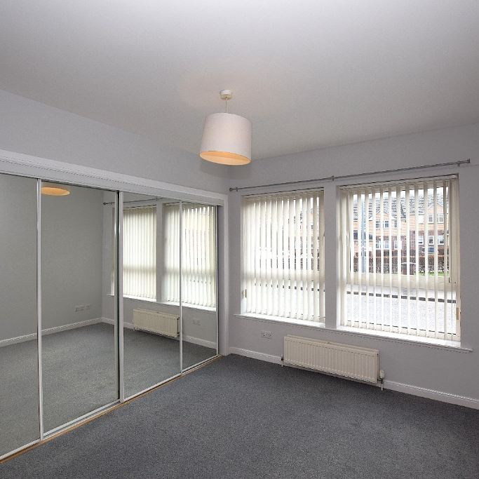 Two-bedroom ground floor apartment situated on New Mill Road, Kilmarnock, offering well-proportioned living within a modern residential setting.