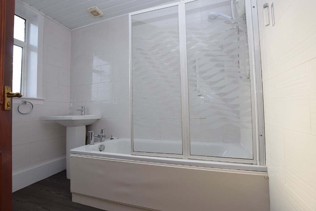 The property comprises spacious entrance hallway, dual aspect lounge with decorative fireplace, rear facing modern kitchen with integrated oven and hob, family bathroom with electric shower over bath and 3 double bedrooms upstairs.